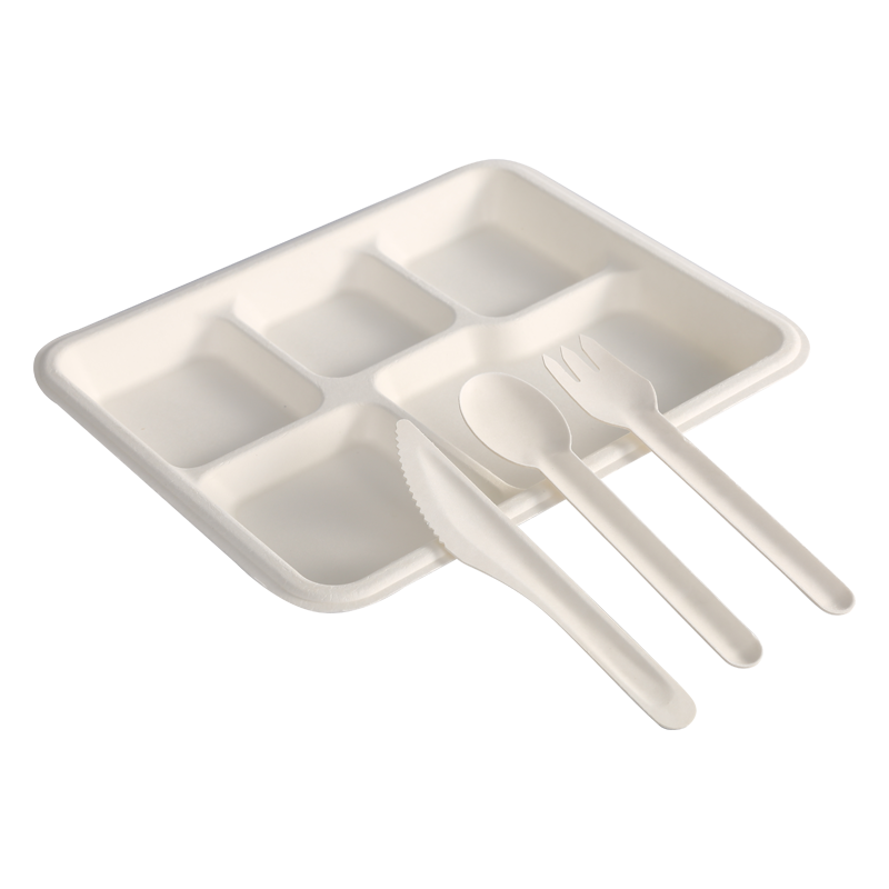 • 5 隔間學(xué)校托盤由甘蔗渣制成,可生物降解和可堆肥。